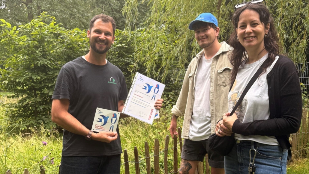 Seit kurzem wurde nun genau diese Umgebung um eine weitere Plakette erweitert: Die NABU-Plakette für ein „Schwalbenfreundliches Haus“ wurde von Jana Romero und Lukas Steck an Sven Berkowicz überreicht. Zukünftig sollen in der Anlage Schwalben ein neues Zuhause finden, indem künstliche Schwalbennester und Nistkästen angebracht werden. In enger Zusammenarbeit mit der NABU will die Grube & Räther GmbH (G&R) den Schwalben eine Chance bieten, sich wieder zu erholen.